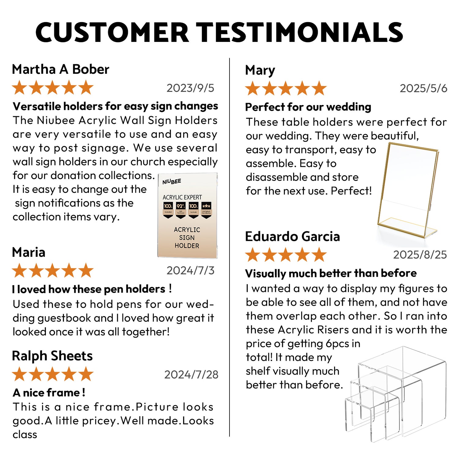 6 Pack 8.5x11" Clear Acrylic Plexi Sign Holders with Double Sided Adhesive Tape, Wall Sign Memo Document Menu Holder
